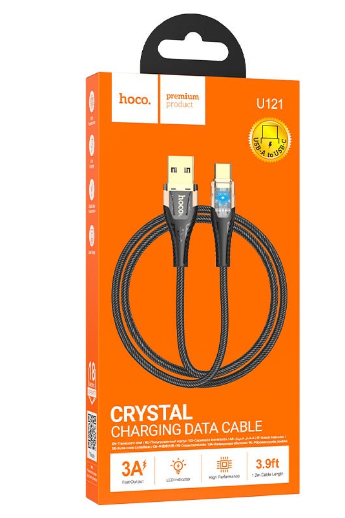 Crafted with a durable nylon braided outer layer and reinforced PVC connectors, this cable is built to withstand daily wear while remaining flexible and tangle-free. A built-in charging indicator allows you to easily monitor charging status, while the transparent “crystal” design and gold-standard finish add a modern, stylish touch. Lightweight yet robust, the HOCO U121 combines durability, performance, and design in one dependable charging cable.